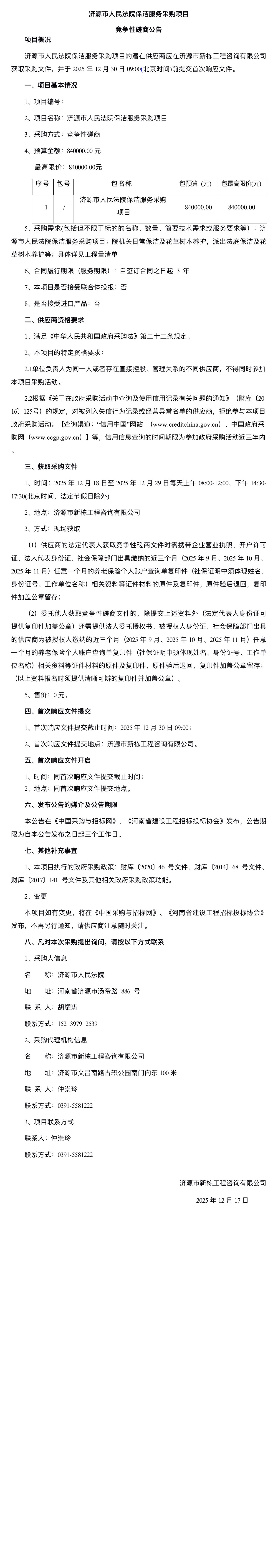 济源市人民法院保洁服务采购项目竞争性磋商公告