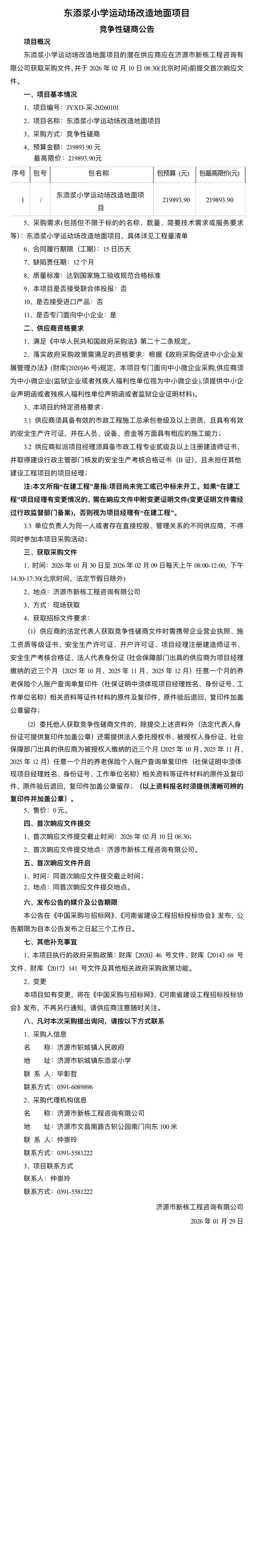 东添浆小学运动场改造地面项目竞争性磋商公告